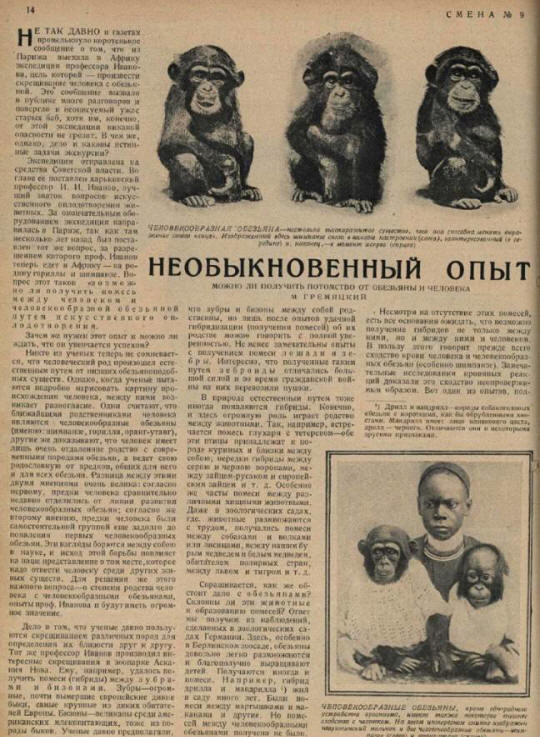 Un articolo sugli esperimenti di Ivanov, quando fai clic sull’immagine puoi vederlo in dimensioni maggiori