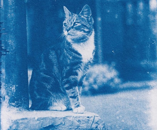 Per mostrare negativi, il fotografo ha fatto ricorso al cianotipo – un processo durante il quale viene creata un’immagine con una leggera sfumatura blu. I gatti sono stati catturati nelle foto.