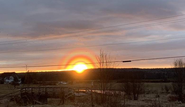 Un residente dell’isola canadese di Manitoulin, Ontario, è diventato pochi giorni fa un testimone di un insolito fenomeno. Christina McNaughton notato al tramonto incredibile anelli concentrici di luce che sorgono intorno al sole e Mi sono affrettato a fotografarli.