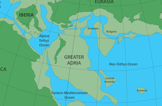 Circa 240 milioni di anni fa, Big Adria si staccò dal supercontinente Gondwana. A quel tempo, Gandwana incluso Africa moderna, Australia, Antartide, Sud America, Indiano subcontinente. Il nuovo continente ha iniziato un lento movimento in in direzione nord.