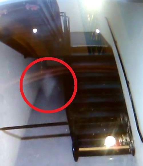 Attivando il video qui sotto, puoi vedere una misteriosa sagoma pallida che si muove lentamente sotto le scale. Lo è sembra un fantasma stereotipato di stencil con una lunga coda invece di gambe, braccia corte e una testa grande.