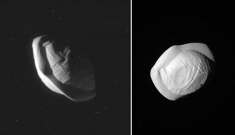 Nonostante la lunghezza massima di questo corpo celeste dista solo 34,4 chilometri, è molto interessato agli scienziati la sua forma insolita. Il satellite ricorda un enorme gnocco, costituito probabilmente da roccia e ghiaccio. Tuttavia, ufologi Esiste un’altra teoria sull’origine di questo oggetto. Alcuni esperti in questo settore nell’esplorazione dello spazio credono quella padella è un’enorme stazione orbitale alieni.