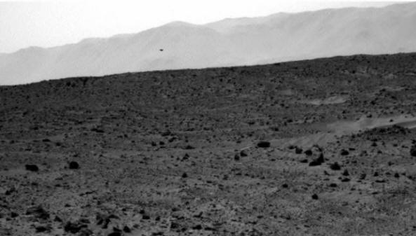 “Questo UFO triangolare è stato catturato dalla telecamera da un rover su questo settimana, foto Sol 688. Dico un triangolo, perché l’oggetto sembra un TR3B (classico UFO triangolare) in lontananza. palla nel suo centro e nella sua estremità corta … dice che potrebbe essere triangolo con due punti visibili “, scrive l’ufologo Scott Waring a Sito Web di UFO Diaries.