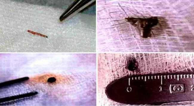 Era come una “matrice con normali celle quadrate, contenente inclusioni sotto forma di codice binario. “Pseudoscientifico il pubblico, e in seguito l’onnipresente stampa li battezzò oggetti “impianti” (lat. “impiantati nel corpo”). pertanto accettiamo di chiamare alcuni oggetti non biologici origine incorporata nel tessuto umano vivente da uno sconosciuto in un modo e con scopi sconosciuti. Tuttavia all’inizio del nostro piccolo gli articoli considerano casi di mera manifestazione di metalli nel corpo di Homo Sapiens. Certo, compaiono frammenti di metallo corpi umani a seguito di ferite sul campo di battaglia, lesioni domestiche e industriali, interventi chirurgici, ecc. qui non saranno considerati insignificanti, sebbene nel già citato In questi casi si manifestano fenomeni molto interessanti e misteriosi. Paul Bragg, autore dell’acclamata opera “Il digiuno”, descrive un incidente che gli è successo. Non posso garantire l’accuratezza del preventivo, ma il corso degli eventi è descritto in modo assolutamente corretto. “Era il quattordicesimo giorno periodo di digiuno mensile annuale. Ho navigato su una barca il corso di un piccolo ruscello. Improvvisamente, un forte forte dolore, accompagnato da convulsioni. Con difficoltà sono uscito riva, e qui circa mezzo bicchiere di mercurio è uscito naturalmente da me. Sono stato sorpreso, ma in seguito ho ricordato che durante l’infanzia io farcito con la medicina “Calomel”, da quando ho sofferto di cronica raffreddori e questa medicina è stata prodotta sul mercurio base “. Ma il caso è molto recente e molto più misterioso. L’elettricista 53enne di Nikolaevsk-on-Amur Pavel Popkov si è rivolto a clinica distrettuale su flemmone sulla spalla sinistra. Che cos’è c’è stata una sorpresa e un po ‘di confusione quando il chirurgo ha aperto un’area infiammata, trovò velenosamente scintillante nella ferita mercurio. Fluoroscopia eseguita successivamente trovata in un paziente il cui le analisi biochimiche erano assolutamente normali, la presenza di un enorme la quantità di mercurio nel corpo. Il metallo velenoso “scintillava” sull’elettricista ovunque tranne il cranio. Mercurio trovato nel circolatorio sistema e linfonodi. A proposito, Popkov si è interessato milizia – Paul prima lavorava nelle miniere d’oro impresa, e lì, come sapete, viene utilizzato per la raffinazione (recupero dell’oro) è precisamente mercurio. Più tardi divenne noto che per diversi mesi prima degli eventi descritti con flemmone di mercurio a un diciottenne venne dai dottori – così l’estrazione dell’oro non aveva niente a che fare, solo i dottori nel secondo caso si è rivelato più attento, curioso e professionale. E qui una classe completamente diversa di rilevabile nei tessuti umani viventi gli articoli offrono molto più spazio per riflessione e ispira evidente preoccupazione per i loro ricercatori. Come era gi� notato in precedenza, dalla fine degli anni ’80 sempre più rapporti di estrazione di tessuto muscolare e osseo da dolori di origine incomprensibile per dottori di pazienti, strani articoli. Le loro dimensioni lineari variavano da frazioni di millimetri. a unità di centimetri. Gli oggetti sono stati collocati nel modo più inaspettato parti del corpo – piedi, parete addominale, setto nasale e così via on. Allarmato dalle crescenti segnalazioni di servizi speciali Gli Stati Uniti (FBI, NSA e soprattutto la CIA) sono strettamente coinvolti dato problema. L’intelligence americana è persino apparsa specialista a tempo pieno – Dr. Roger Lear. A proposito, quasi il primo la storia della rimozione da parte del Dr. Lear di un impianto metallico le gambe del paziente hanno scavalcato le pagine di giornali e riviste e è probabilmente uno dei pochi consentiti per la divulgazione. Il resto, come al solito, è coperto da un velo di segretezza e chiuso informazioni con il timbro spaventoso “Top Secret” in modo sicuro, come in uno dei primi episodi di X-Files, sepolto in clandestinità segreta strutture di deposito. Descriviamo brevemente questo caso, giusto per avere un’idea di ciò che costituisce impianto. Dalla metà degli anni ’90 per esame al Dr. Lira CIA inviato più di duecento persone. Ognuno di loro ha accettato estrazione di corpi estranei dai loro tessuti molli o ossei. Uno dei primi oggetti recuperati era simile alla lettera “T” lunga circa un centimetro. Era incastrato nell’osso del piede di una donna sana e coperto con una membrana scura di origine organica, non suscettibile di tagliando con un bisturi medico affilato. Inoltre, la membrana stranamente fuso con il nucleo di ferro dell’impianto e ossa del piede. Il soggetto stesso è stato coperto con processi microscopici, impiantato in ossa, cartilagine e persino terminazioni nervose. Tessuti in giro l’impianto aveva una struttura insolita, erano spostati e come se “altrimenti assemblato.” Gli stessi casi sono stati registrati in Russia. All’inizio 2000 presso l’Istituto di ricerca di medicina di emergenza di San Pietroburgo. II Janelidze in un paziente di trenta anni con un esame al computer gli esperti hanno trovato una macchia scura sullo schermo del monitor. a un esame dettagliato del punto si è improvvisamente trasformato in un complesso una forma geometrica composta da diversi rettangoli. Un corpo estraneo che misurava meno di cinque millimetri era chiaramente origine artificiale e chiaramente spiccava su uno sfondo di più cellule cerebrali luminose. Non identificare il paziente patologico i cambiamenti, gli esperti hanno attribuito il fatto della presenza nel cranio di uno straniero soggetto alla categoria di equivoci “irrilevanti”. bene e ora il più interessante: cos’è, dove e perché? ci diverse ipotesi sulla comparsa di formazioni estranee nei tessuti viventi. Come sempre, i cittadini spaventati peccano sulle macchinazioni di servizi speciali. come, strutture di potere per instillare 