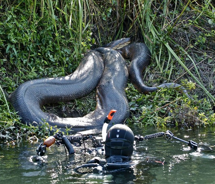 All’inizio, gli uomini presero un serpente per un fiume enorme un tronco, tuttavia, avvicinandosi a lui su una barca, si resero conto che anaconda raccapricciante, lunga circa 9 metri.