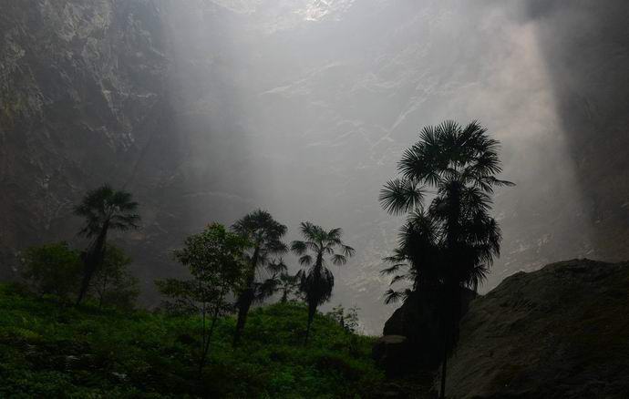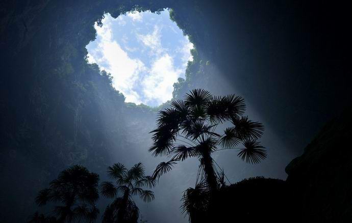 La profondità della straordinaria cavità nella crosta terrestre è circa duecentonovanta metri. Fino a poco tempo fa, vicino all’ingresso di la grotta era una grande discarica. Quando le autorità locali ha deciso di eliminarlo e cancellare completamente il territorio della spazzatura, i cinesi hanno scoperto un enorme buco che porta da qualche parte in basso. Si è scoperto che ci sono vaste aree verdi con erba sotterranea, arbusti e persino alberi.