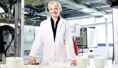 Anke Domaske è un designer e anche un biologo. È riuscita a creare materiale innovativo a base di caseina di latte. con la tecnologia sviluppata da lei, è stato possibile ottenere dalle materie prime iniziali prodotto finito finale. La caseina è stata ottenuta dal latte, quindi da la proteina risultante è stata creata fibra e il tessuto è tessuto dalla fibra. Il “tessuto del latte” risultante è il primo materiale creato senza sostanze chimiche e nella sua struttura ricorda la seta. Non pensare che il tessuto abbia l’odore del latte o che non sia resistente. Al tessuto lo stesso odore di altri tessuti, e può essere lavato, come altri tessuti. Nel “tessuto del latte” c’è una proprietà insolita, il materiale fa bene alla salute.