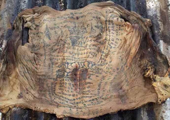I lavoratori hanno scoperto molti tatuaggi sulla pelle del defunto, che rappresentano iscrizioni, disegni e disegni incomprensibili. come allo stesso modo si è scoperto che i resti marcivano quasi fino all’osso, tuttavia, la pelle era in condizioni eccellenti, non colpita dal decadimento? I superstiziosi thailandesi sono convinti che siano misteriosi i tatuaggi il lavoro manuale di alcuni stregoni e servono a fare la pelle è invulnerabile a qualsiasi danno, nonché alla decomposizione.
