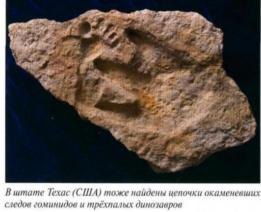 Per qualche motivo, tutti sono interessati a come e in quali circostanze mostri raccapriccianti del mesozoico: i dinosauri morirono. Ma molto di più domanda intrigante: come sono nati? Gli evoluzionisti credono che i loro antenati erano teododonti bipedi, simili ai coccodrilli e a volte raggiungendo un’altezza di sei metri, e anche quella diretta gli antenati dei dinosauri pseudosuchia (“falsi coccodrilli”) proseguirono zampe posteriori raddrizzate, appoggiate su tutto il piede, come fanno persone moderne. Anche i post più cattivi su questo argomento sono sempre sembrava intrigante. L’interesse è stato aggravato dal fatto che in molti aree del mondo hanno scoperto tracce molto antiche, sospettosamente simile alle tracce di un uomo eretto. Quindi, in Texas (USA) a a sei chilometri dalla città di Glen Rose lungo il fiume Paluxy sono state trovate catene di tracce pietrificate di una creatura eretta intervallati da tracce di dinosauri a tre dita. È mesozoico un uomo pascolava una mandria di mostri sulla riva proprio come un rustico pastore – una mandria di capre o mucche? Una delle tracce “umane” calpestare l’impronta di un dinosauro. Se non è falso, allora?