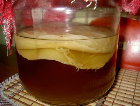 Secondo Lindau, Kombucha è una simbiosi di due microrganismi: batteri del lievito e dell’acido acetico. E insieme creano un’enorme colonia in rapida crescita che sembra una medusa, ma colore marrone chiaro. Il fungo galleggia sulla superficie del liquido, simile a un film giallo multistrato con processi simili tentacoli di meduse.