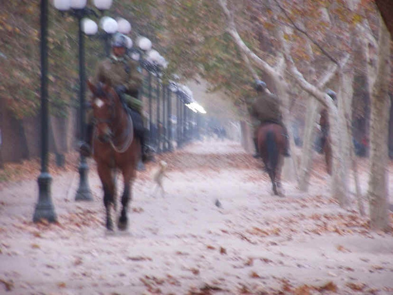 Ma proprio questo, forse, ha permesso al fotografo di “catturare” l’inquadratura qualcosa di insolito – un omino che attraversa con calma la strada nel parco dietro i cavalli dei cavalieri Carabinieri. Herman stesso non ho notato nulla di sospetto in quel momento, quindi questo strano Noterei sicuramente una figura sulla strada. Ma … lei non c’era. Tuttavia, quando il fotografo ha guardato le foto il giorno successivo, fatta da lui nel parco, questa misteriosa foto è emersa.
