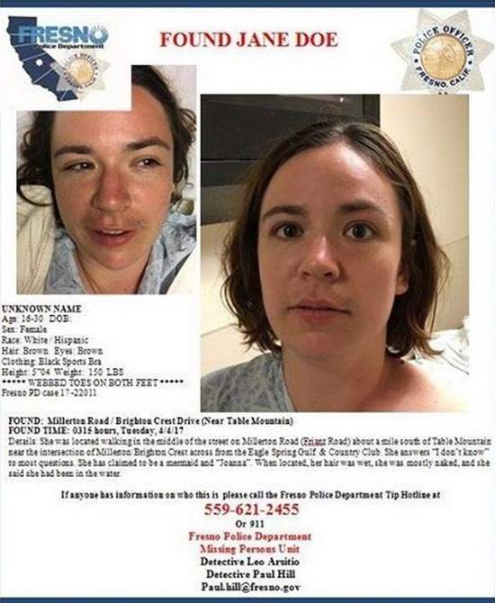 Jane Doe (un tale nome negli Stati Uniti è dato a tutte le incognite il gentil sesso) parlava un po ‘di inglese e apparteneva ad altri con cautela. Ha riferito solo di se stessa presumibilmente era una vera sirena, che visse prima in acqua e poi era contro la sua volontà sulla terra.
