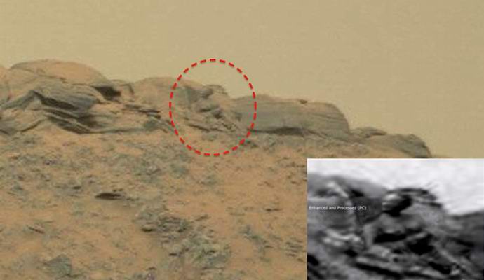 In una fotografia presentata da UFO Sightings Ogni giorno “, puoi davvero vedere qualcosa che ricorda molto figura di pietra del Buddha. La testa con gli occhi, il naso e per bocca, spalle, petto, braccia e tronco. Secondo gli ufologi, Ci sono troppe partite per un colpo. Comunque comunque ci sono scettici che lo sostengono con un grande desiderio tra Rocce marziane possono essere viste anche al Cremlino di Mosca, ma questo non significa che sia davvero lì. Ufologi rispondi anche con ironia: prova, trova e poi lo faremo discutere cosa sì come …