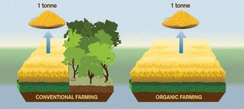 Il fatto è che gli autori scrivono che le culture organiche senza fertilizzanti chimici già familiari esibiscono inferiore colture e quindi (che lo vogliamo o no) richiedono grandi aree, elevati costi energetici portano a una maggiore deforestazione e in definitiva, a maggiori emissioni di CO2. Per quanto riguarda bestiame biologico (per chiarire), quindi richiede coltivazione di campi organici, e quindi è caratterizzata praticamente gli stessi svantaggi.