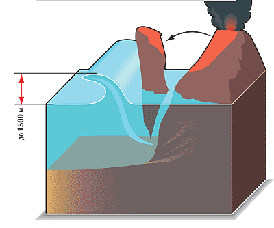 Le Hawaii possono dare alla luce uno tsunami gigante. È quasi inimmaginabile: tsunami alti oltre 300 piedi (300 metri) avvicinandosi alle isole hawaiane. Ma gli scienziati sono diventati nuovi prove: queste onde sono mostri chiamati mega-tsunami, farà proprio questo. I risultati sono stati presentati a incontro annuale della American Geophysical Union. Al contrario da uno tsunami da un terremoto, lo tsunami hawaiano colpirà quando ci sarà una massiccia disintegrazione della catena di vulcani sulle isole e inizier� enormi frane. Questo succede approssimativamente ogni 100.000 anni e collegato al cambiamento climatico, ha affermato Gary McMurtry (McMurtry) Professore all’Università delle Hawaii a Honolulu.