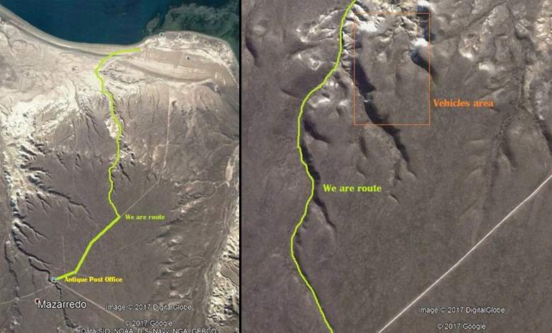 Il testimone dice che stava viaggiando con la sua ragazza in citt� Puerto Deseado lungo la costa dell’Oceano Atlantico. Quando l’inizio facendo buio, gli argentini decisero di rimanere in un piccolo motel. La mattina dopo partirono a piedi verso la baia di Masarredo, alcuni chilometri da lì. Avvicinandosi alla riva, i nostri eroi notarono cinque bianchi automobili, ognuna delle quali aveva un simbolo arancione nella forma cerchio barrato. Vicino alle macchine la gente era piena di gente strana tute quasi traslucide. Questi individui misteriosi eretta vicino all’acqua una torre di 10 metri, simile a qualcosa proveniente da Film di fantascienza di Hollywood.
