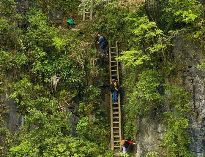 Per i bambini non si può chiamare la strada per la scuola meno difficile Zhang Haiwan Village. E sebbene in questo caso non ci siano grandi distanze, ma i ragazzi e le ragazze devono alzarsi ogni giorno e scendi le scale traballanti fino a un’altezza a strapiombo di settanta metri e senza alcuna assicurazione. Incredibile ma I bambini cinesi lo fanno con una sorta di fantastico facilità. Non una paura delle altezze è generalmente inerente a tutti i cinesi, è possibile giudicare almeno con quale virtuosismo e impavidità circensi costruire e riparare sentieri per escursioni in montagna.