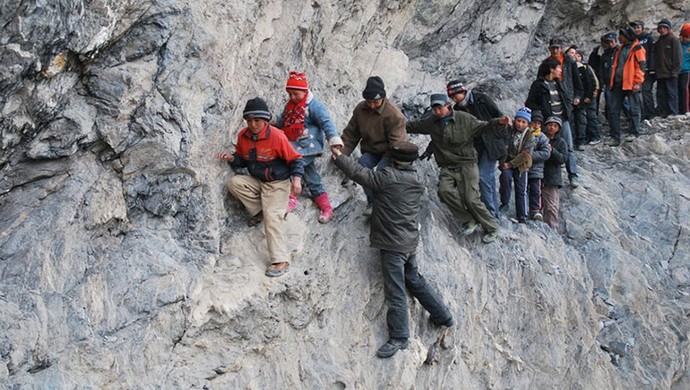 Ad esempio, nella provincia cinese del Sichuan c’è un piccolo villaggio Gulu, i cui figli devono superare un enorme distanza per arrivare a scuola. Per rendere tutto più facile test per i bambini, gli adulti si sono fatti strada attraverso il tunnel accorciando così il percorso. Tuttavia, la traccia stessa in questo caso si allunga sopra il precipizio e in alcuni punti non supera i sessanta centimetri. I ragazzi e le ragazze del villaggio devono farlo superare questo pericoloso percorso una volta alla settimana, dalla scuola funziona secondo il principio di un collegio, cioè con la fornitura di pernottamenti e fornire cibo.