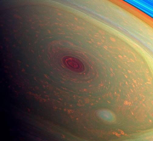 Foto da open source DUE TERRE Hexagon l’aspetto dovuto ai vortici di jet che vanno a 60 chilometri di profondità nell’atmosfera e sono composti da nuvole di gas. Lo sono tenere il perimetro della tempesta e formare un’area che ruota intorno al polo nord del pianeta ad una latitudine di circa 77 gradi. Il diametro dell’esagono dai flussi di vortice è di circa 30 mila chilometri, ogni lato – 14.500 chilometri. In esso, per sempre dicendo, due pianeti come la Terra potrebbero adattarsi. mozione le onde equivalgono a circa 322 chilometri orari. Al centro – imbuto. Questo fenomeno non è più da nessuna parte nel sistema solare. È interessante notare che nel polo sud di Saturno il corretto senza esagoni: i vortici polari sono ordinari cerchi a spirale, nelle fotografie assomigliano alla terra tornado gigante.