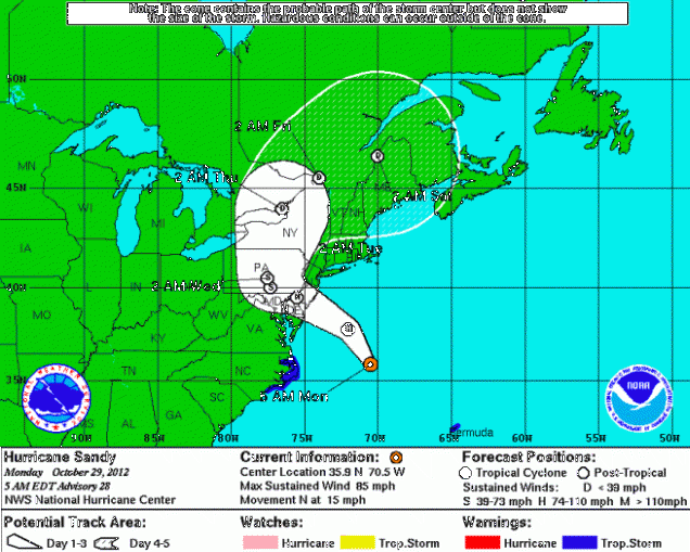 Traiettoria predittiva dell’uragano Sandy. © NHC | NOAA