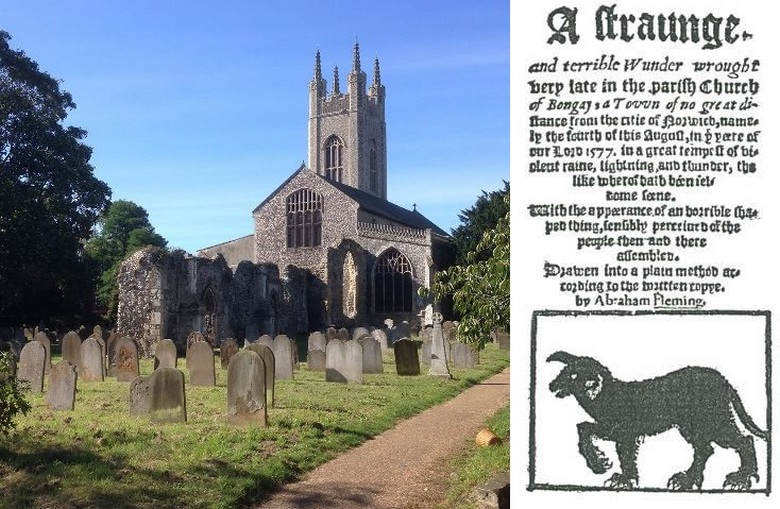4 agosto 1577 parrocchiani della città di Bangui in Contea di Suffolk, riunita per il culto nella chiesa di Santa Maria. Durante il servizio sulla città scoppiò una tempesta, atterrò nella chiesa un fulmine, e poi un terribile Cerbero scoppiò nel suo edificio. Irrompere alla porta, un gigantesco cane nero si precipitò lungo le panchine con i parrocchiani. Due uomini alla vista di un mostro con una preghiera caddero in ginocchio e il cane, correndo dietro di loro, in qualche modo arricciato il collo ad entrambi, e lo sfortunato è morto … dopo quello il mostro nero altrettanto rapidamente scomparso, e non è chiaro dove, e lasciato indietro due ancora caldi il cadavere. Più tardi, gli abitanti della città hanno appreso che lo stesso giorno il mostro originariamente irruppe nella chiesa della Santissima Trinità nel villaggio di Blitburg, che dista 12 miglia da Bangui. Durante un forte temporale, i contadini nascosto sotto le volte della chiesa, e ora al prossimo le fragorose porte fragorose si aprirono all’improvviso – e un enorme il cane, che sembrava un diavolo dell’inferno, ruggì tra la folla con un ruggito, uccidendo vai ragazzo e uomo. In quel momento, la guglia della chiesa cadde attraverso il tetto verso il basso. Dopo che il cane fuggì, le porte rimasero segni dai suoi artigli sotto forma di segni di abbronzatura che sono visibili e oggi …