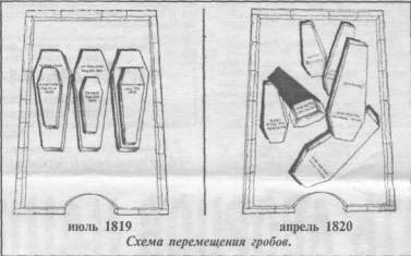 Nell’autunno del 1816 fu sepolto S.V. di 2 mesi. Ames, ha aperto la cripta. Le bare, come l’ultima volta, erano sparse. Incolpato di nuovo schiavi. Sei mesi dopo, hanno portato a seppellire Samuel Brewster – di nuovo nella cripta regnava una vera e propria rotta.
