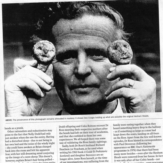 La famiglia Dodd nel quartiere iniziò improvvisamente a riferire incidenti soprannaturali. Uno dei figli cominciò a svegliarsi di notte da qualcuno che gli tira i capelli e sua madre Nellie poco dopo, vide una creatura inquietante uscire di casa. Lo è sembrava un mezzo montone mezzo uomo. Quando a entrambe le famiglie divenne chiaro che la colpa era la scoperta dei fratelli, delle figurine consegnato alla dott.ssa Ann Ross, esperta di manufatti celtici cultura.