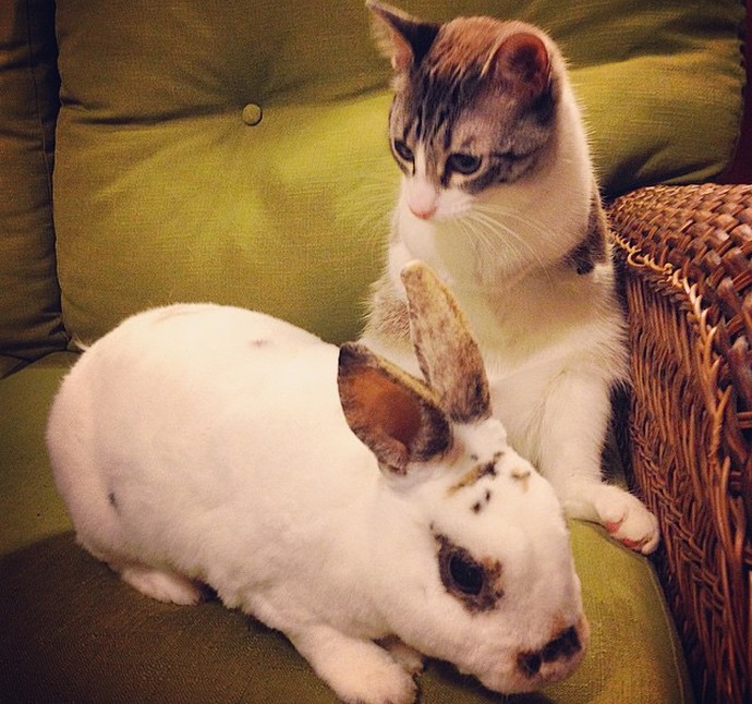 Inoltre, in questa famiglia un gatto ha incontrato la sua amica – un coniglio soprannominato Canguro, e ora non solo mangiano e giocano insieme, dormono persino in un abbraccio. Ma l’affetto principale di Rawkes, ovviamente, alla sua padrona Jackie. Secondo la donna, a volte ha sembra che il gatto capisca tutto, anche quello lei disabile, che è stata salvata dalla morte imminente e che è stata fortunata incontrare Akei. E l’animale è veramente grato per tutto per Jackie l’ha creata. Questo a volte si esprime anche nel fatto che Rocks fissa intensamente gli occhi della padrona e fa le fusa con gratitudine.