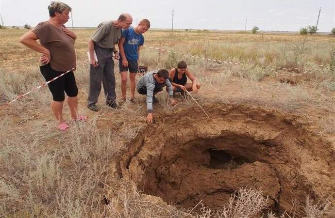 L’anno scorso è stato trovato un buco simile nella regione di Volgograd, vale a dire, sotto il villaggio di Prudovy, distretto di Svetloyarsky. abitanti del villaggio ha persino chiamato la polizia, ma gli agenti delle forze dell’ordine non hanno trovato Non cercarono il corpus delicti e il ladro di terra.