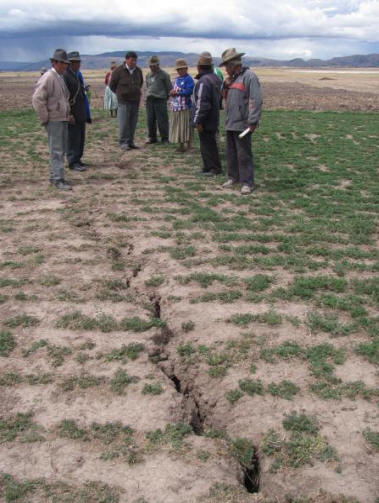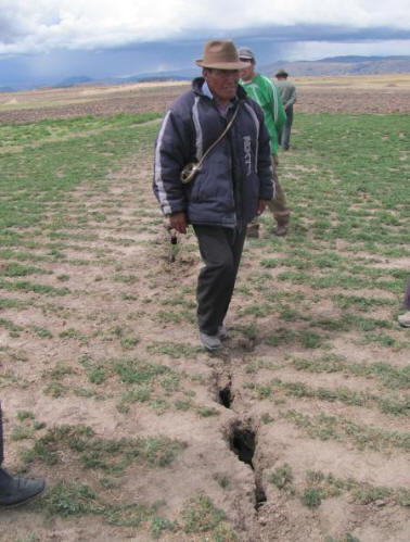 Il panico spazzò quasi 200 residenti della comunità rurale di Tuni Requena (Tuni Requena), Taraco (Huancan), dove su terreni agricoli apparvero delle crepe. Sebbene le crepe siano state scoperte per circa due anni fa, sono stati distrutti dall’erosione e dagli stessi contadini, ancora esistono difetti sulla terra che non possono essere rilevati, e questo preoccupa i residenti che credono che le crepe possano aprirsi in qualsiasi momento, portando alla morte inaspettata di entrambe le persone e bestiame.