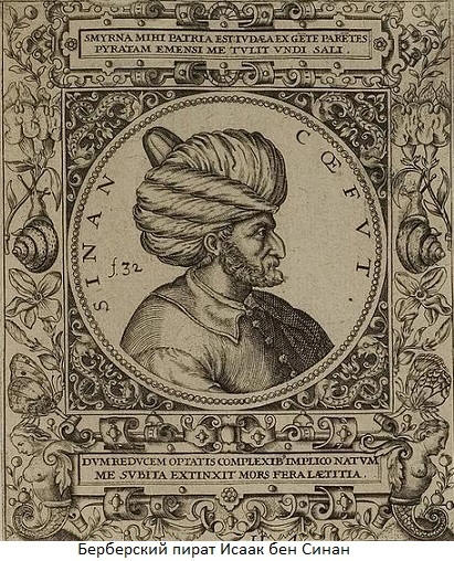 Nella flotta musulmana rapinatore, apparvero navi su cui Sono state osservate osservanze religiose ebraiche, sabato è stato dichiarato giorno non lavorativo (Shabbat!). Le navi dei pirati ebrei si rannicchiarono grandi squadre guidate dai capitani di maggior successo. Sotto la guida di Sinan Rais espulso dalla Spagna (aka Isaac bin Sinan) 6.000 pirati ebrei hanno nuotato e combattuto. Sull’albero di punta una bandiera che sventola con una stella esagonale.
