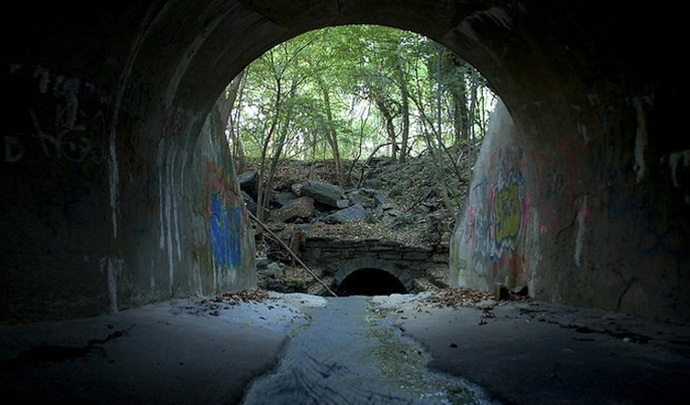 Nella città statunitense di Clifton (New Jersey), ingresso temporale gli scarichi dietro la distilleria Black Prince sorprendono per il suo insolito forma quadrata, e anche il fatto che l’acqua scorre misteriosamente qui modo. Se ti immergi in questi tunnel, rimarrai stupito dal fatto che essi centinaia di metri decorati con affreschi satanici e graffiti. qui pieno di ossa umane e persino di cadaveri – vittime di riti oscuri.