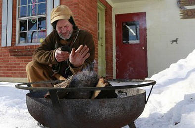 Foto da fonti aperte Un uomo sta cercando di scaldarsi accanto al fuoco. a Indianapolis in Indiana