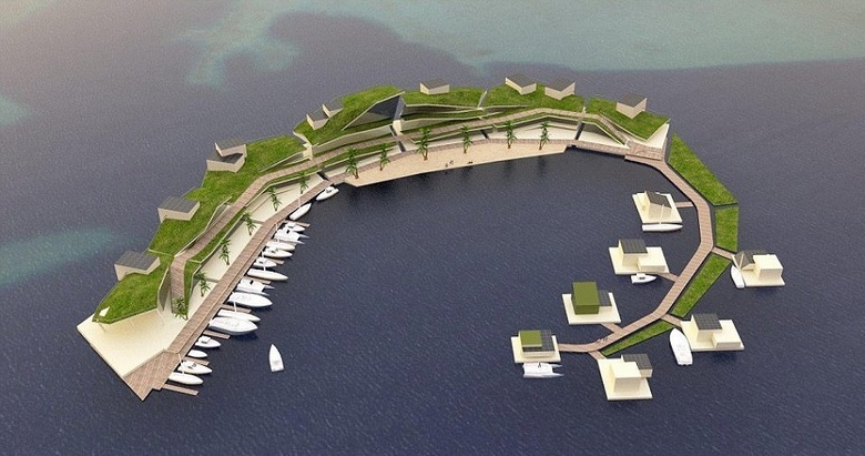 Il nostro team ritiene che tale “isola galleggiante” può ulteriormente risolvere il problema delle inondazioni di terra dovute a aumento del livello del mare. Questo è particolarmente vero per Isole polinesiane che si ergono su coralli e scompaiono sotto prima l’acqua. Ecco perché è stato scelto per lo stato sull’acqua posto nell’oceano vicino a Tahiti. È importante vedere come sar� funzione una nuova città per avere un futuro chiaro un’idea di cosa e come fare per adattarsi al clima rifugiati. L’isola galleggiante conterrà almeno 300 appositamente case progettate per lui, così come hotel, ristoranti, uffici, negozi, istituzioni culturali e così via. Particolare attenzione è rivolta a il paesaggio della città futura: ad esempio, gli architetti hanno in programma di riflettere nella progettazione di colline e montagne, lo rendono un “giardino fiorito e allo stesso tempo tempo di mettere in relazione tutto ciò con le tradizioni della cultura polinesiana e vita.