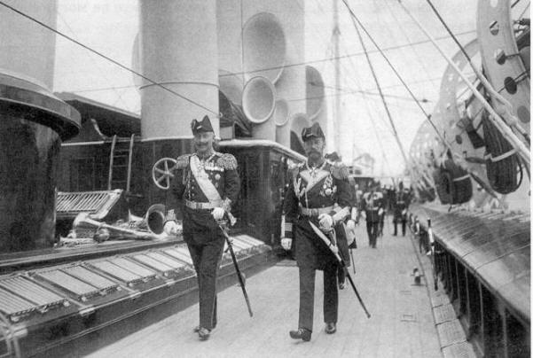 Kaiser Wilhelm II e l’Imperatore Nicholas II sul ponte di uno yacht “Standart”. Luglio 1907