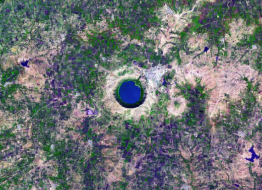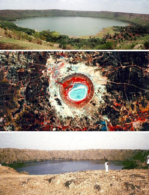 foto da crateri open source, la cui età è inferiore a 50 anni 000 anni, potrebbe essere associato alla guerra nucleare nei tempi antichi. Nessuna traccia di materiale meteorico è stata trovata nel cratere stesso o i suoi dintorni, mentre è l’unico cratere di impatto basalto di fama mondiale. L’analisi mostra tracce di una potente onda d’urto (pressione oltre 600.000 atmosfere) e forte colpo di calore (come evidenziato dalle microsfere di vetro basalto).