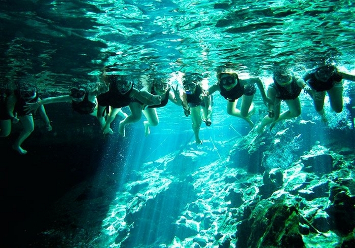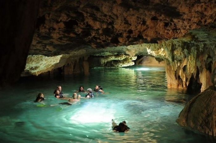 Tuttavia, qui non puoi solo ammirare la bellezza della metropolitana del mondo, ma anche fare snorkeling e conoscere sott’acqua paesaggi che sono belli a modo loro. A proposito, a proposito di nuotatori e si imbatte in rocce di stalagmite e stalattiti, altre formazioni geologiche.