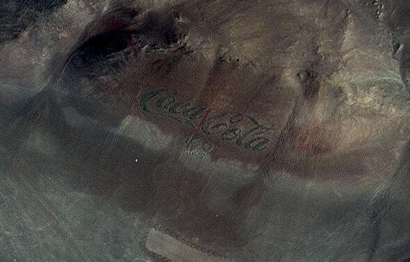 Questo logo Coca-Cola è realizzato con vecchie bottiglie. soda e si trova su una collina in Cile