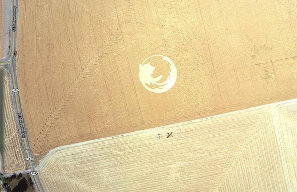 Un cerchio gigante sul campo sotto forma di un logo Firefox in Oregon