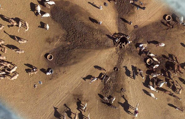 Persone e cammelli alla fonte d’acqua in Nigeria