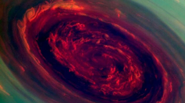 Cassini per la prima volta ha permesso ai ricercatori di distinguere un uragano Saturno in dettaglio. Come la velocità del vento al centro di un uragano si è scoperto raggiunge 150 m / secondo. A differenza delle tempeste terrene, che si muovono intorno al pianeta, l’uragano su Saturno è fermo e situato al suo polo nord. Sulla Terra, gli uragani sono di solito deriva a nord a causa della turbolenza del vento causata dal movimento il pianeta.
