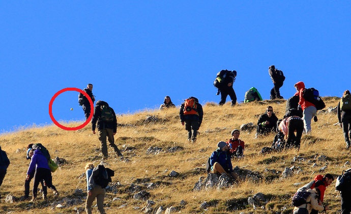 Secondo l’autore di un’immagine insolita, in arrampicata, oltre a lui, vi parteciparono circa duecentotrenta persone, ma nessuna di esse non si accorse allora della palla volante. Probabilmente non c’è nulla in questo sorprendente poiché l’UFO in rapido movimento non ha colto di sorpresa anche il fotografo che lo ha catturato. Inoltre, i turisti in quel momento si fermò e non guardò particolarmente il cielo.