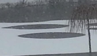 Questi cerchi insoliti si verificano anche sulla neve o sul ghiaccio incomprensibile, come le loro controparti che compaiono nei campi. Questo fenomeno è stato girato su uno stagno in Eden (un sobborgo di New York). locale residente Peggy Gervais improvvisamente notato come in superficie un piccolo stagno situato vicino a casa sua apparve nel ghiaccio cerchi perfettamente uniformi.