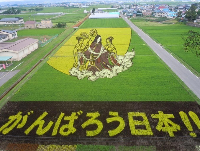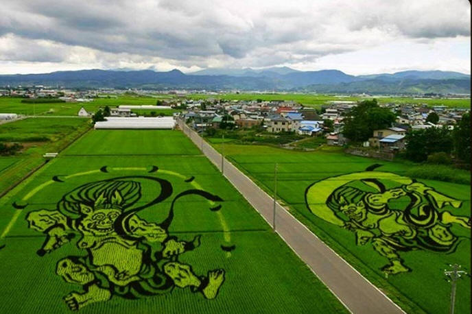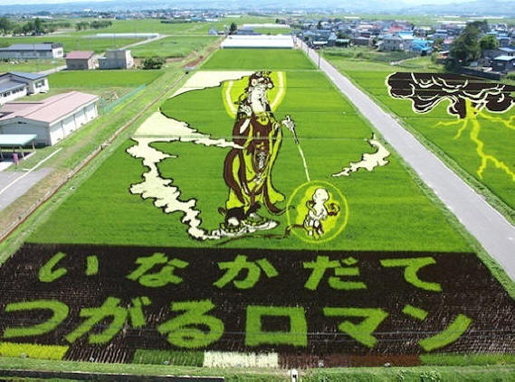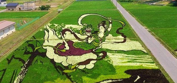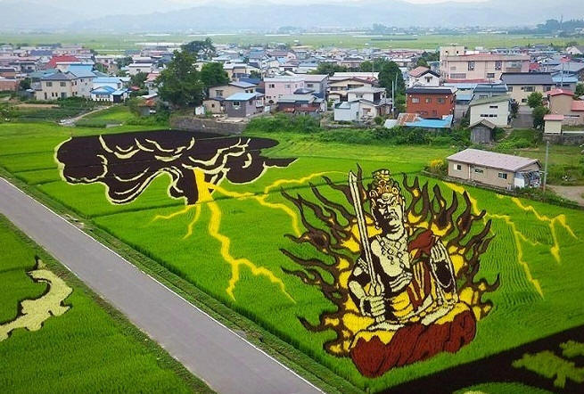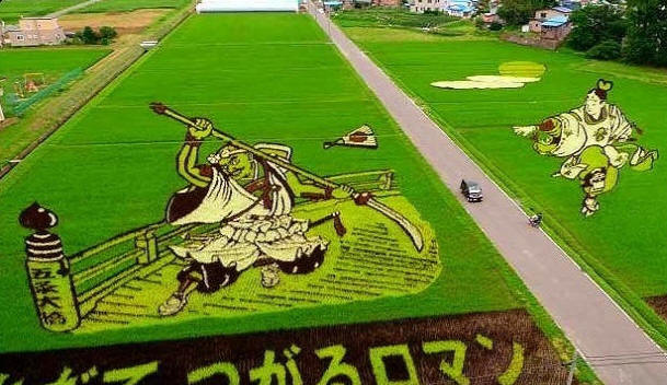 Nel 1993, uno dei contadini suggerì di seminare un campo (15.000 sq.m.) con diverse varietà di riso in modo che le piantine creino un “quadro”. Nessuno nel villaggio sventolò via, nessuno definì l’idea folle. In quello l’anno in cui i contadini di Inakadat “dipinsero” per la prima volta nel loro campo “Immagine”. Quindi l’arte di creare dipinti panoramici su risaie – tambo.