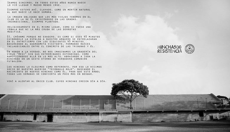 Un albero solitario che cresce dal rostro di uno stadio locale, con consegnato una tessera associativa; inoltre, è costantemente vestito T-shirt con logo club. Fan sempreverde di Resistencia più vecchio della squadra stessa, quindi i giocatori di calcio e i fan considerano l’albero parte integrante della storia del club.