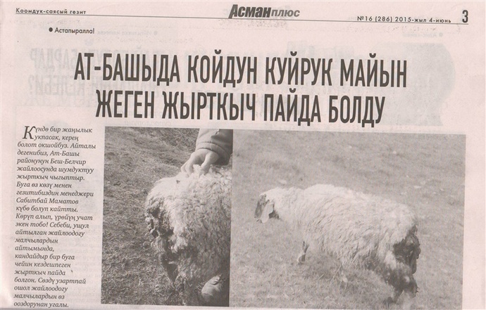 Se nel distretto di Sokuluk nella regione di Chui, il chupacabra è tradizionalmente bevve il sangue degli animali, poi questa volta semplicemente una creatura sconosciuta perplesso i pastori del jailoo alpino Besh Belchir, situato a Distretto di At-Bashinsky, perché il predatore si è comportato qui in qualche modo strano.