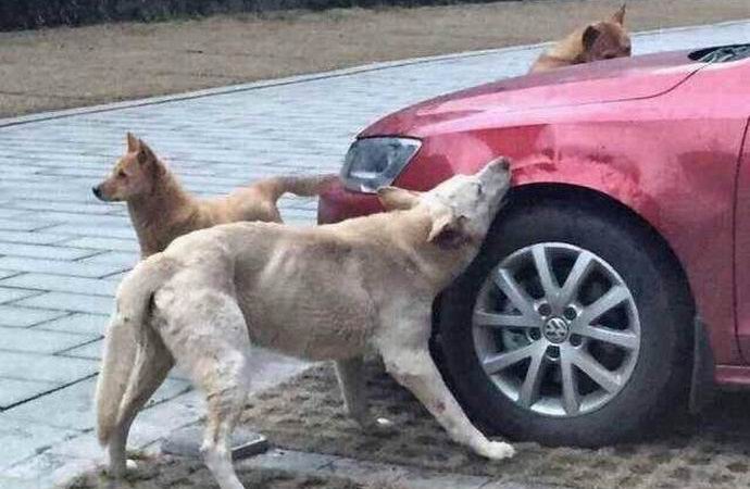 Gli animali piombarono sull’auto e iniziarono a morderlo in tutto luoghi dove sono riusciti a raggiungere. Hanno rotto i tergicristalli e gli specchi retrovisore, mordicchiato sulle ali dell’auto e lasciato molto su di esso ammaccature. Quando il proprietario vide la sua macchina la mattina dopo, arrivò orrore e stava per chiamare la polizia e informare le autorit� la legge e l’ordine su un atto così palese di vandalismo, ma un vicino ha mostrato lui una foto.