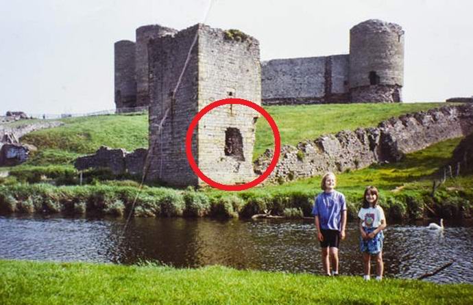 L’immagine è stata scattata da un gallese più di un quarto di secolo fa vicino al castello di Ridlan nel Galles del nord. La fotografia è stata catturata Le figlie di Lonsdale – a dieci anni Sarah e a sei anni Fiona. Ragazze che sorridono in posa sullo sfondo della torre del castello, separati da loro da un piccolo canale con cigni. Sembrerebbe che questo lo scatto di famiglia più comune, tuttavia, David afferma che l’immagine è un vero ospite dell’altro mondo.