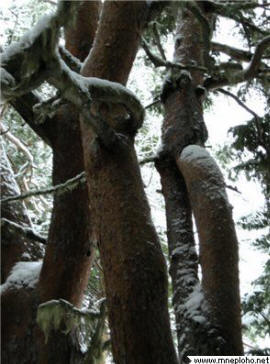 In luoghi in cui crescono alberi contorti, appena visibili i tumuli delle tombe di qualcuno. Secondo una versione, queste sono le tombe degli antichi Voguls, il cosiddetto popolo Mansi. Dall’altro, queste sono tracce pozzi in cui viveva il miracolo dagli occhi bianchi, persone mitiche, presumibilmente assediando Gerusalemme sotto il re Salomone. Nascondersi da persecuzione, chud andò a nord, dove si stabilì nel nascosto boschetti di boschi.
