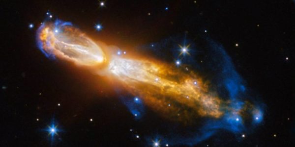 La nebulosa, nome in codice OH 231.8 + 04.2, è un ottimo esempio della morte di una stella di piccola massa come il nostro Sole. Hubble ha mostrato che la stella si trasforma rapidamente da gigante rossa in una nebulosa planetaria, un processo mediante il quale la stella espelle i suoi strati esterni di gas e polvere nello spazio circostante. Il materiale espulso fluisce in direzioni opposte a una velocità incredibile – circa un milione di chilometri all'ora.